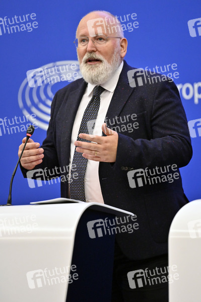 Frans Timmermans bei einer Pressekonferenz zu erneuerbaren Energien im Europäischen Parlament. Straßburg, 14.09.2022
