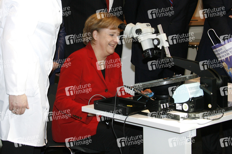 Eröffnungsrundgang der Bundeskanzlerin zur CeBIT 2008 (Centrum der Büro- und Informationstechnik), der weltgrößten Messe für Informations- und Computertechnik auf dem Messegelände in Hannover. Am Stand vom KOMSA.