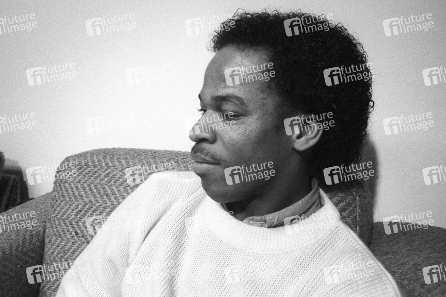 Blair Cunningham von Haircut One Hundred bei einem Interview im Artista Records Office. London, 03.12.1983