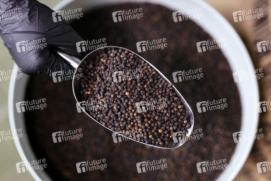 Gewürze, Gewürz, schwarzer Pfeffer, Pfefferkörner, Piperin, Covid19, Covid-19, Corona, Corona-Virus, Coronavirus, Coronaviren, Corona-Viren, Heilmittel, Vorbeugung, Hauspotheke, Piper Nigrum, Aroma, aromatisch, Indonesien, Organic, Pfeffer, Spices, Sulawesi, Protein S, Hauptprothease, Immunsystem, Abwehrkräfte, Gesundheit, Heilgewürz, scharf, Symbolbild, Symbolfoto