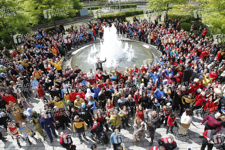 FedCon XIX im Bonner Maritim Hotel, Tag 2. Neuer Weltrekord für ein Treffen von Trekkies in Kostümen und Uniformen aus den Star Trek Serien und -Filmen für das Guinness Buch der Weltrekorde. 507 Fans trafen sich im Innenhof des Maritim Hotels in Bonn