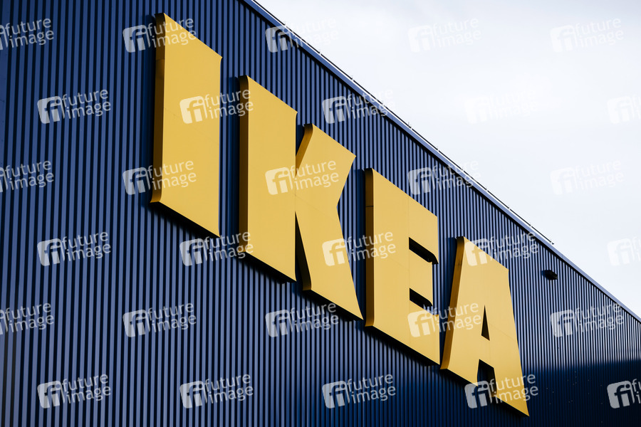 Ikea-Logo, Ikea-Schriftzug, Slogan 'Entdecke die Möglichkeiten', 'Wohnst du noch oder lebst du schon', Möbel, Möbelhaus, Inneneinrichtung, Wohnung, Wohnen, Wohnzimmer, Esszimmer, Kinderzimmer, Schlafzimmer, Badezimmer, Wohnkultur, Einrichtungshaus, Großhändler, Discount, Einkaufen, Shopping, INGKA Foundation, Einrichtungskonzern, IKEA-Filiale, IKEA-Katalog, IKEA-Regal, schützenswerte Wälder, Urwald, Urwaldholz, Tropenholz, IKEA-Effekt, IKEA-Möbel, IKEA-Restaurant, Einrichtungsideen, IKEA-Mitarbeiter, IKEA-Eröffnung, IKEA-Markt, Lieferkosten, Möbel mieten, Mietmöbel, Möbel-Leasing, Möbel leasen, Möbel-Riese, Möbel-Konzern, Köttbullar, Konzern, Konsum, Regal Billy, Regal Kallax, Konsumieren, Schweden, Unternehmen, Firma, Ersteinrichtung, Möbel zusammenbauen, DIY, Do it yourself, Wirtschaft, IKEA GmbH & Co. KG, Deko, IKEA-Produkt, IKEA App, Retail Brand, Symbolbild, Symbolfoto