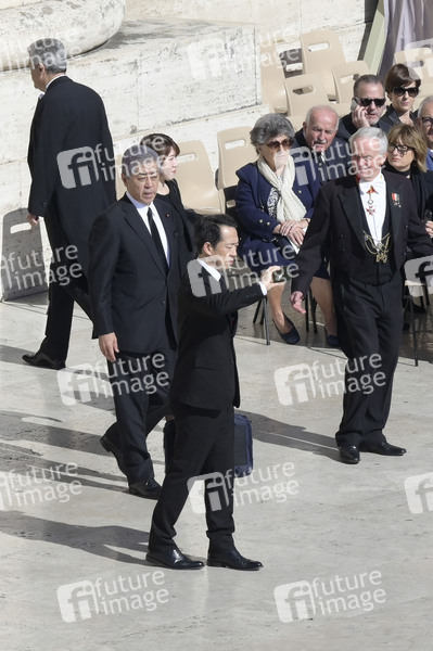 Takeshi Iwaya bei der Trauermesse für den verstorbenen Papst Franziskus auf dem Petersplatz. Vatikanstadt, 26.04.2025