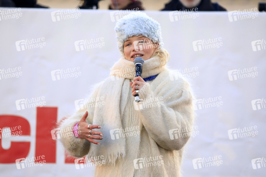 Politik, Demonstration, Hass, Hetze, Extremismus, Kundgebung, Brandmauer, Demo, Aktion, Banner, Demonstrant, Demonstranten, Demonstrierende, demonstrieren, Protestaktion, Protestdemo, Protestdemonstration, Kundgebung, gegen Rechts, Rechtsextremismus, gegen AfD, Schauspielerin