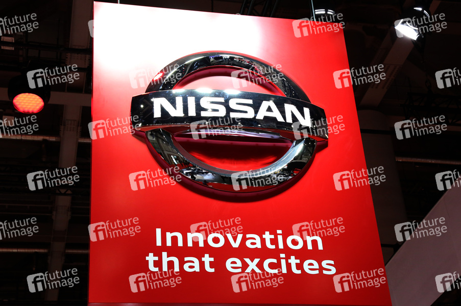 Nissan Logo beim Pressetag der 46. Tokyo Motor Show 2019 auf dem Messegelände Tokyo Big Sight. Tokio, 23.10.2019