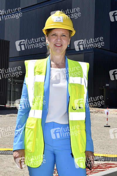 Tanja Wielgoß bei einer moderierten Fragerunde anlässlich der Inbetriebnahme des neuen gasgefeuerten Heizkraftwerks mit einer Turbine aus dem Berliner Turbinenwerk der Siemens AG im Vattenfall-Heizkraftwerk in der Rhinstraße. Berlin, 03.06.2020