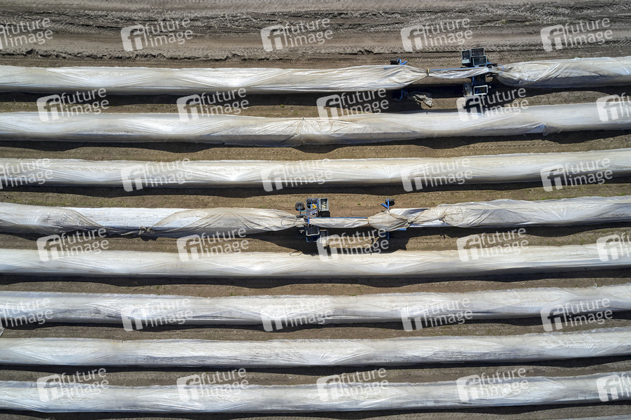 Spargelfeld, Spargel, Spargelfelder, Spargelernte, Gemüse, Erntehelfer, Feld, Luftbild, Luftaufnahme, Engels SpargelSpinne, Spargel Spinne, Spargelmashine