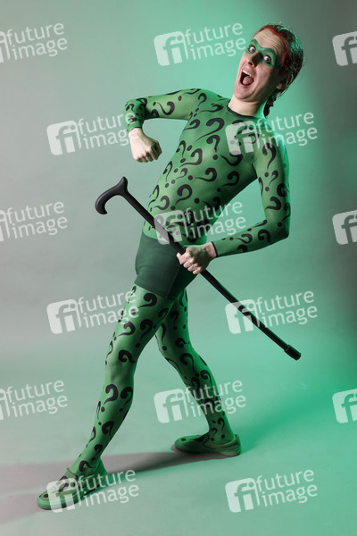 Cosplay, Cosplayer, Bodypainting, Body-Painting, Make-up, Maskenbildnerei, Körperkunst, Körperfarben, Projekt Farbkörper, Farbe, Bemalung, Kunst, Malerei, Comic, DC Comics, Comicfigur, Verbrecher, Psychopath, Batman-Gegner, Edward Nygma, Fragezeichen, Rätzel, body painting, body art, project color body, colors, colours, villain, comic character, criminal, psychopath, Batman opponent, question mark, riddle