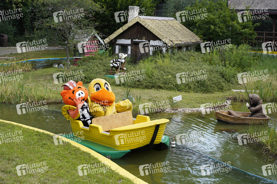 Flimmy und die Filmpark-Ente beim Fototermin zum Saisonstart vom Filmpark Babelsberg in Janoschs Traumland. Potsdam, 26.06.2020