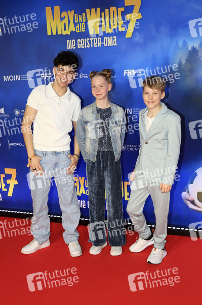 Giuseppe Bonvissuto, Klara Nölle und Lucas Herzog bei der Premiere des Kinofilms 'Max und die Wilde 7: Die Geister-Oma' im Mathäser Filmpalast. München, 28.04.2024