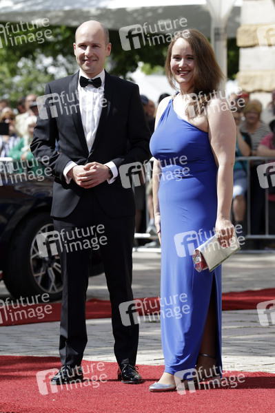 Ricarda Lang mit Ehemann Florian Wilsch bei der Eröffnung der 113. Richard-Wagner-Festspiele 2025 mit der Neuinszenierung von 'Die Meistersinger von Nürnberg' im Bayreuther Festspielhaus. Bayreuth, 25.07.2025