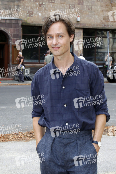 Tom Schilling beim Fototermin am Set zum Kinofilm 'Fabian - Der Gang vor die Hunde' am Wilhelmsplatz Ecke Jakobstrasse. Görlitz, 09.08.2019