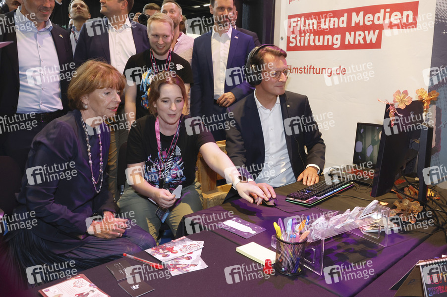 Henriette Reker (Oberbürgermeisterin von Köln) und Hendrik Wüst (Ministerpräsident von Nordrhein-Westfalen) auf der weltgrößten Computerspielmesse Gamescom 2024 in der KoelnMesse. Köln, 21.08.2024