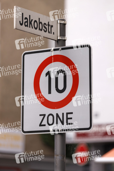 Verkehrsschild, Verkehrsschilder, Verkehrsordnung, Amtsschimmel, Amtsposse, Tempo-10-Zone, Verkehrsberuhigung, Tempolimit, Straßenverkehrsordnung, Fantasie-Schild, Abstandsempfehlungen, Coronakrise, Corona-Krise, Corona, Virus, Corona-Maßnahmen, Verkehrszeichen, Verkehrszeichenkatalog, Vorschriftsverkehrszeichen, Recht und Gesetz, Ordnung, Verkehrsrecht, Verkehr, Geschwindigkeit, Geschwindigkeitsbegrenzung, Symbolbild, Symbolfoto