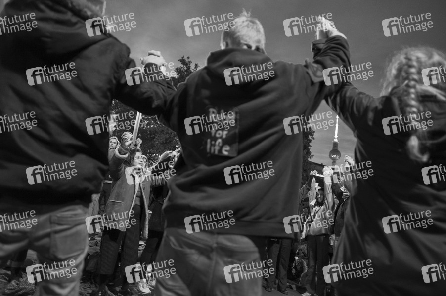 Aktivisten der Klimabewegung 'Extinction Rebellion' blockieren die Jannowitzbrücke. Berlin, 09.10.2019