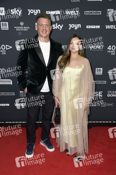 Anne Menden mit Freund Gustav Masurek beim Vaunet Jubiläumsevent '40 Jahre Private Medien' im Telegraphenamt. Berlin, 10.10.2024