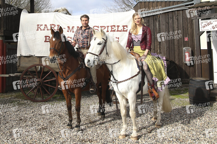 Raul Richter und Larissa Marolt beim Pressetermin zur Vorstellung des neuen Winnetou und der Gaststars der Karl-May-Spiele 2019 im Indian Village. Bad Segeberg, 08.03.2019