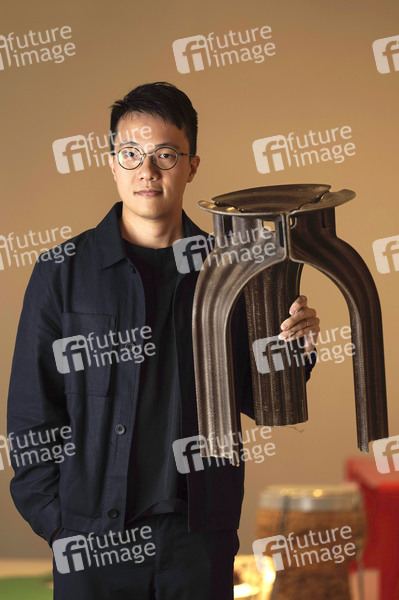 Dennis Cheung bei der Eröffnungszeremonie der Salone Satellite Permanent Collection 1998-2024 im M+ Pavillon. Dennis Cheung, der Gründer von Studio RYTE, wird für die Verbindung traditioneller Handwerkskunst mit moderner Technologie gelobt. Honkong, 11.11.2024