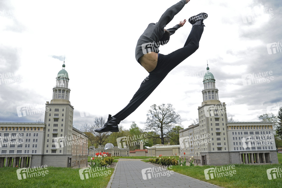 Fototermin zu 'Made in Berlin', der neuen Show im Wintergarten. Die jungen Artisten Eike von Stuckenbrok, David Pereira, Mareike Koch und das Duo Dennis und Lea zeigen einige ihrer Kunststücke im Modellpark Berlin in der Wuhlheide