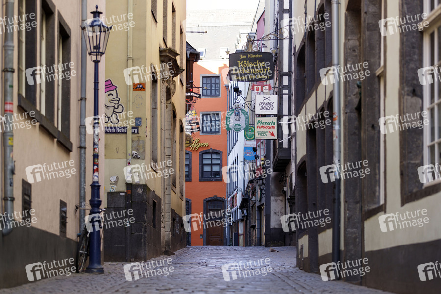 Die menschenleere Salzgasse mit geschlossenen Bars während der Corona-Krise. Köln, 22.03.2020