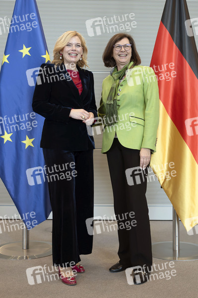 Julia Klöckner und Ilse Aigner beim Empfang zum Gespräch zwischen der Bundestagspräsidentin und der Präsidentin des Bayerischen Landtags im Reichstagsgebäude. Berlin, 04.11.2025