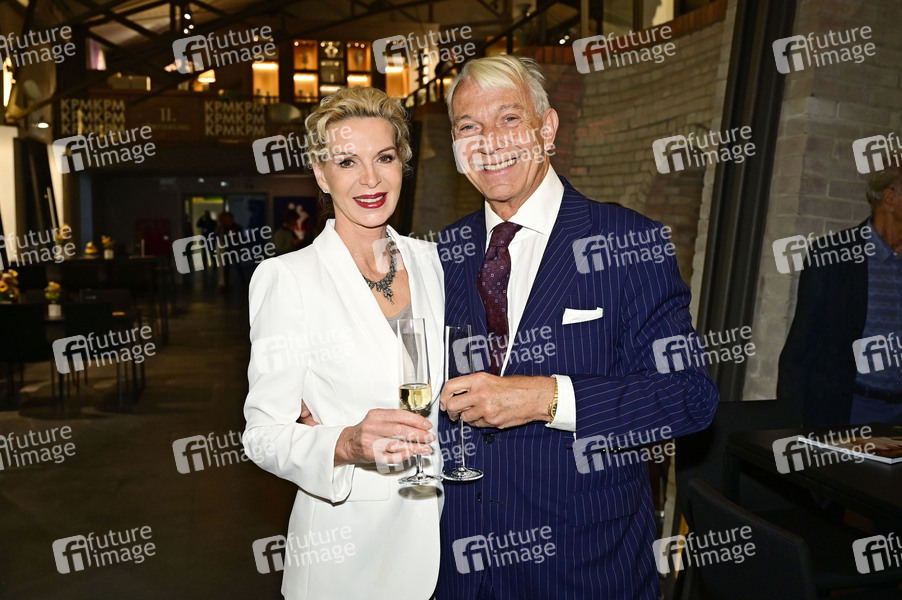 Joe Groebel mit Ehefrau Grit Weiss beim Flying Dinner zum 261. Geburtstag der Königlichen Porzellan-Manufaktur Berlin sowie der Enthüllung des vollständig, restaurierten Fliesenwandgemäldes 'Glory of Germania' in der Ringkammerofenhalle auf dem Manufakturgelände. Berlin, 20.09.2024