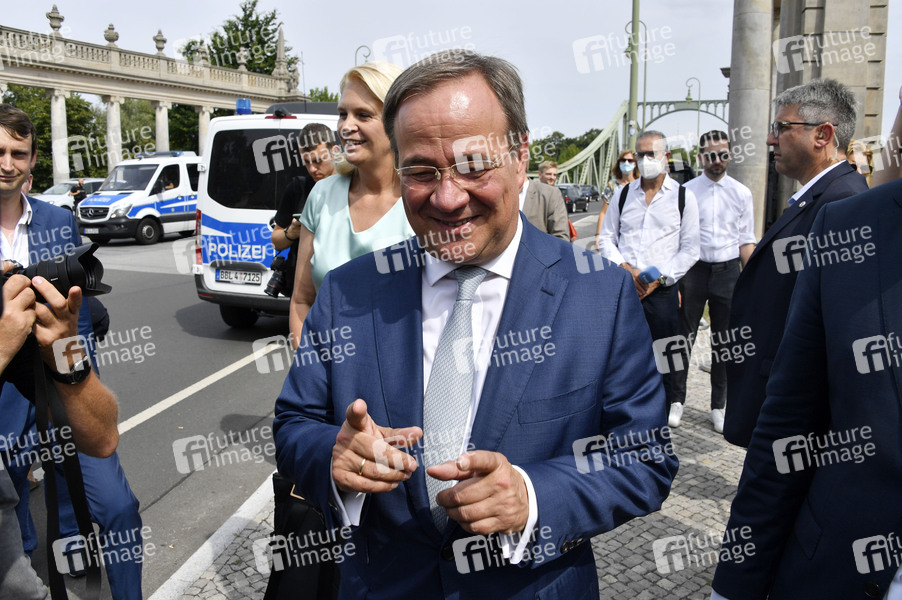 Armin Laschet bei einer Gedenkveranstaltung zum 60. Jahrestag des Baus der Berliner Mauer an der Glienicker Brücke. Potsdam, 13.08.2021