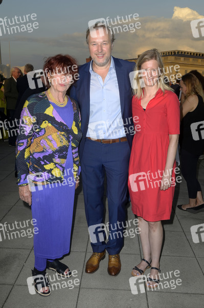 Regina Ziegler, Stephan Grossmann und Stephanie Stremler beim Eröffnungsempfang der UFA Filmnächte 2022 auf der Dachterrasse der Bertelsmann Repräsentanz. Berlin, 24.08.2022