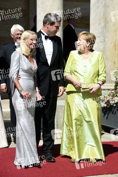 Markus Söder mit Ehefrau Karin Baumüller, Angela Merkel