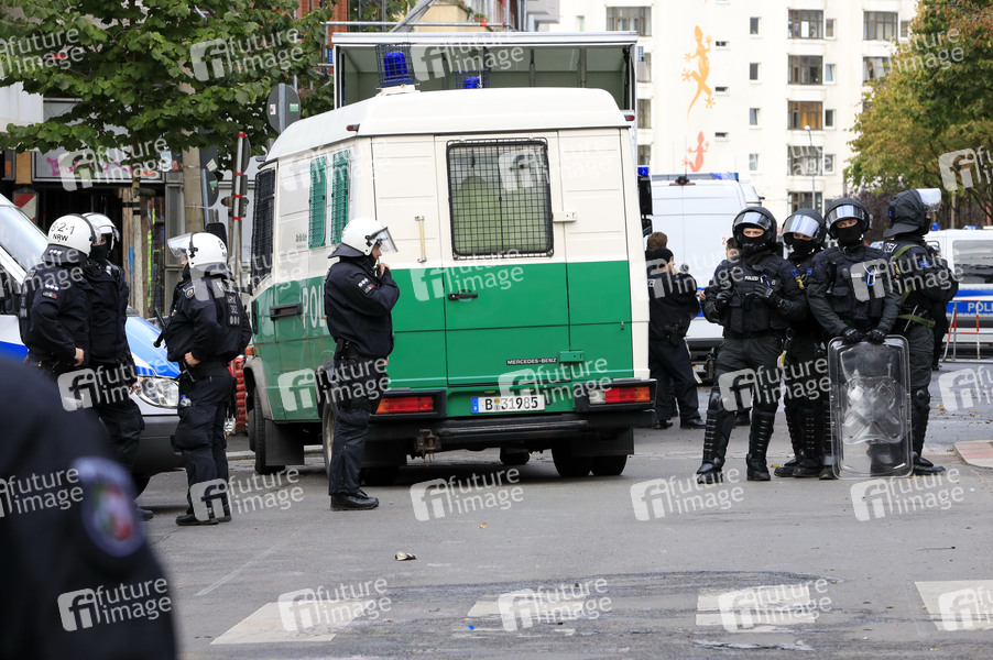 Die Berliner Polizei hat das Wohnprojekt Liebig34 in Berlin-Friedrichshain geräumt. Polizisten verschafften sich Zugang zu dem Haus führten nach und nach die Bewohnerinnen heraus. Die Berliner Polizei war mit 1500 Beamten im Einsatz. Vor dem Haus kam es zu Demonstrationen. Berlin, 09.10.2020