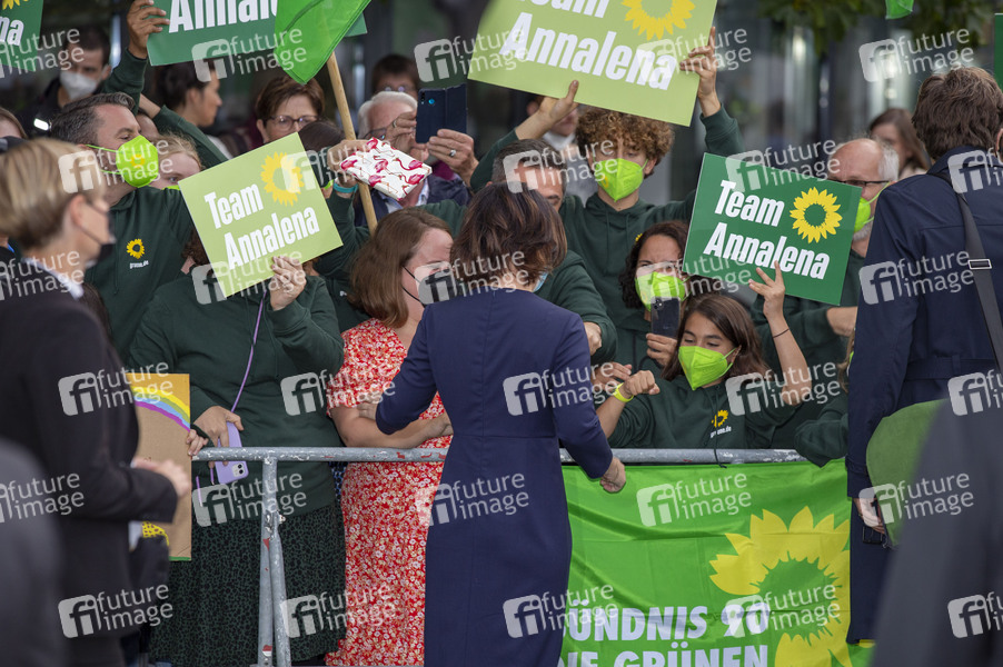 Politik, Wahl, Wahlkampf, Partei, Wahlkampfveranstaltung, Parteienwerbung, Kampagne, Wahlen, Bundestagswahlkampf, Bundestagswahl, Bundestagswahlen, TV-Triell, TV-Duell, Talk, Gespräch, Talkrunde, Gesprächsrunde, Diskussion, TV, Fernsehen, Politikerin, Kandidatin, Kanzlerkandidatin, MdB, Mitglied des Bundestages, Bundesvorsitzende Bündnis 90/Die Grünen