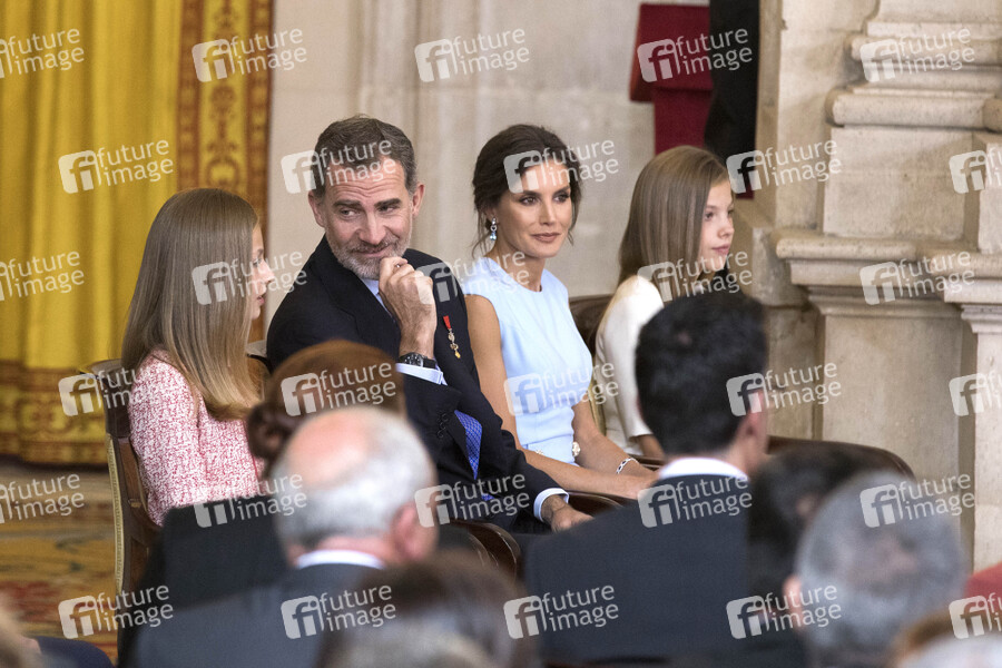 Prinzessin Leonor, König Felipe, Königin Letizia und Prinzessin Sofia bei der Verleihung der Orden del Mérito Civil im Palacio Real. Madrid, 19.06.2019