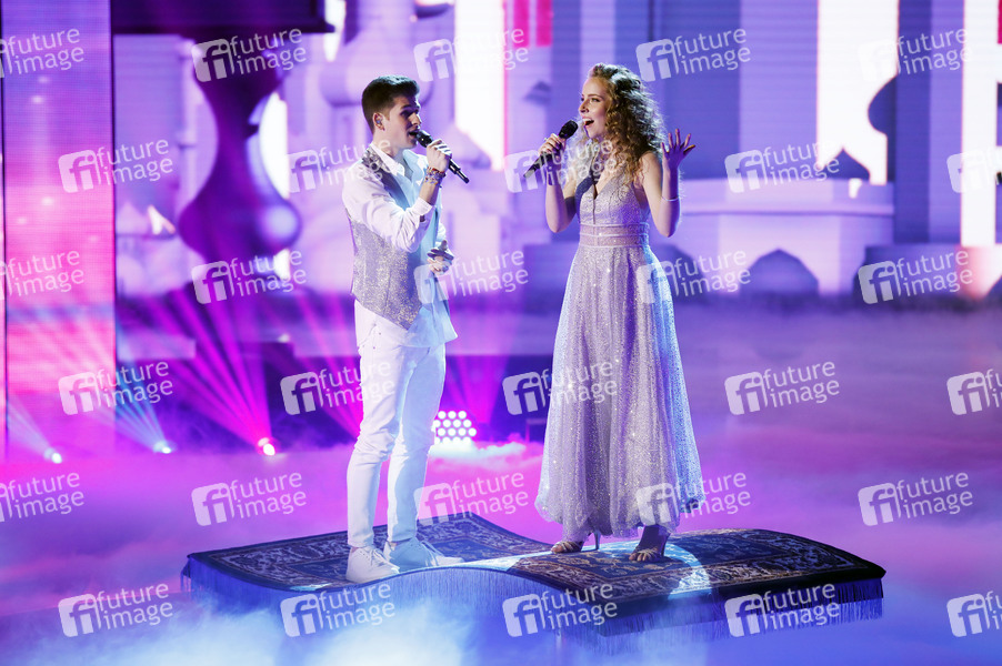 Taylor Luc Jacobs und Clarissa Schöppe in der dritten Live-Mottoshow der 16. Staffel der RTL-Castingshow 'Deutschland sucht den Superstar / DSDS 2019' im MMC Coloneum. Köln, 20.04.2019