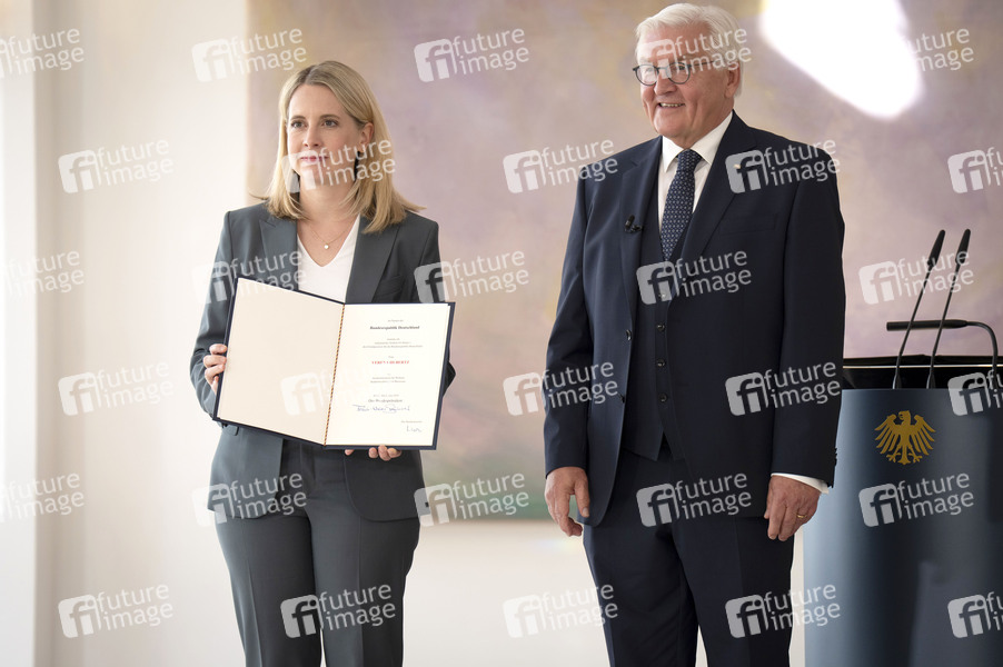 Verena Hubertz und Frank-Walter Steinmeier bei der Ernennung des Bundeskabinetts im Schloss Bellevue. Berlin, 06.05.2025