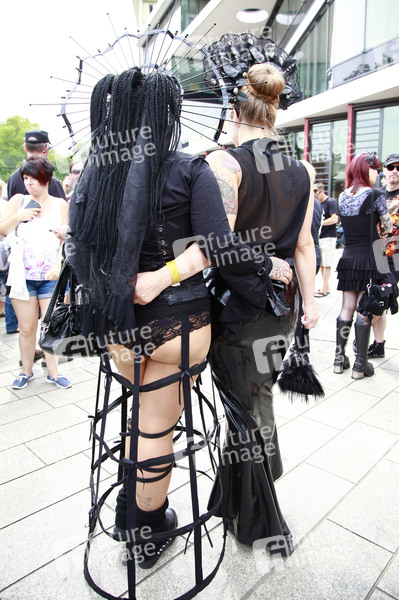 Festivalbesucher beim 28. Wave-Gotik-Treffen auf dem Agra-Gelände. Leipzig, 09.06.2019