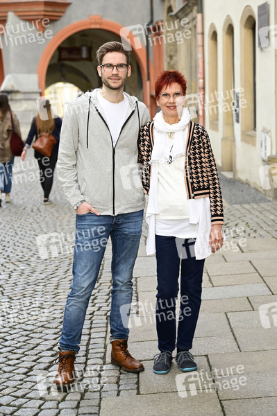 Lukas Natschinski mit Mutter Gundula Natschinski bei einer exklusiven Sightseeing-Tour in der Brüderstraße am Schönhof in der Görlitzer Altstadt. Görlitz, 20.04.2025