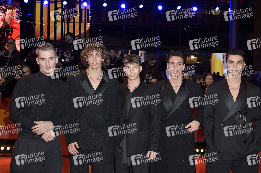 Jacob Rott, Tim Schäker, Julien Brown, Bene Schulz und Luis Freitag von den The Elevator Boys bei der Festivaleröffnung und der Premiere des Kinofilms 'Small Things Like These / Kleine Dinge wie diese' auf der Berlinale 2024 / 74. Internationale Filmfestspiele Berlin im Berlinale Palast. Berlin, 15.02.2024