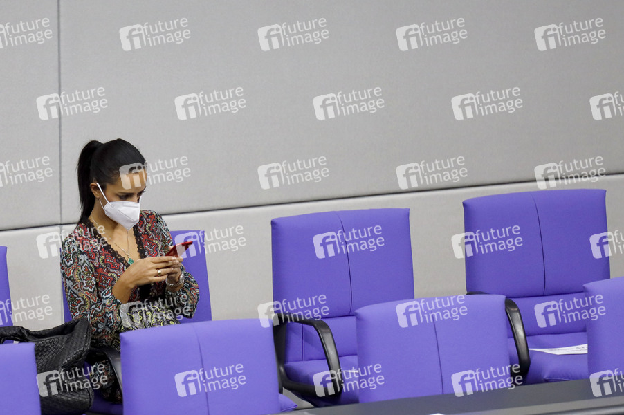 Sawsan Chebli bei der Rede von UN-Generalsekretär Guterres anlässlich 75 Jahre Vereinte Nationen im Plenum im Reichstagsgebäude. Berlin, 18.12.2020