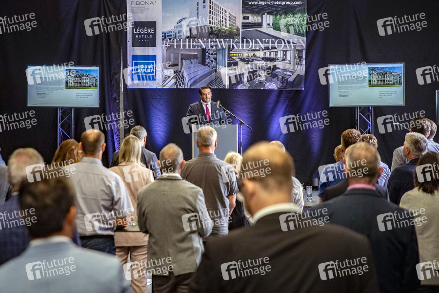 Sven J. Köllmann beim Richtfest des neuen Hotels an der Messe Erfurt. Die Légère Hotelgruppe übernimmt die Leitung. Erfurt, 16.07.2021