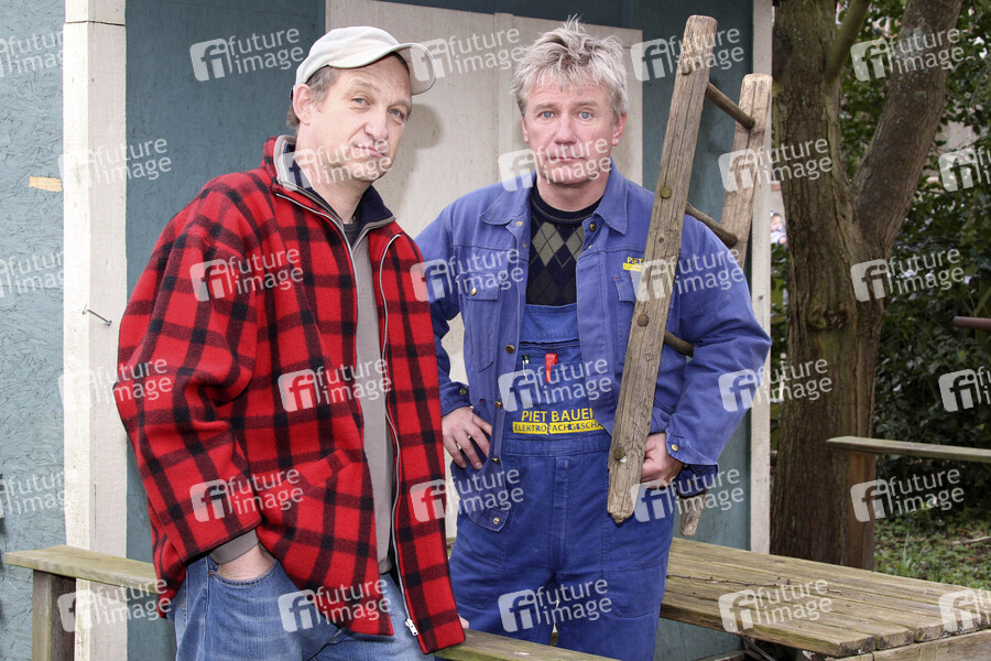 Fototermin am Set der ARD-Serie 'Die Blaumänner' am Cafe Kehrwieder, Winsen/Luhe