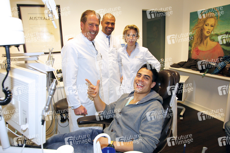 Vor seiner Abreise ins Dschungelcamp lässt sich Silva Gonzalez in der Praxis Dentalspecialists von Prof. Dr. Martin Joergens, Prof. Dr. Martin Wainwright und Dr. Caroline Kentsch zahnärztlich untersuchen, Düsseldorf