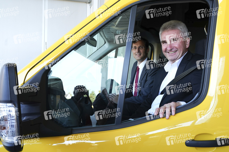 Manager, Konzernvorstand von Deutsche Post DHL Group, Politiker, FDP, NRW-Wirtschaftsminister, DHL, Deutsche Post, Deutsche Post Group, E-Mobility, Etektromobilität, E-Auto, nachhaltig, Post, Paketdienst, Elektroauto, Elektrotransporter, Umwelt, umweltfreundlich, Postzustellung, Symbolfoto, Symbolbild