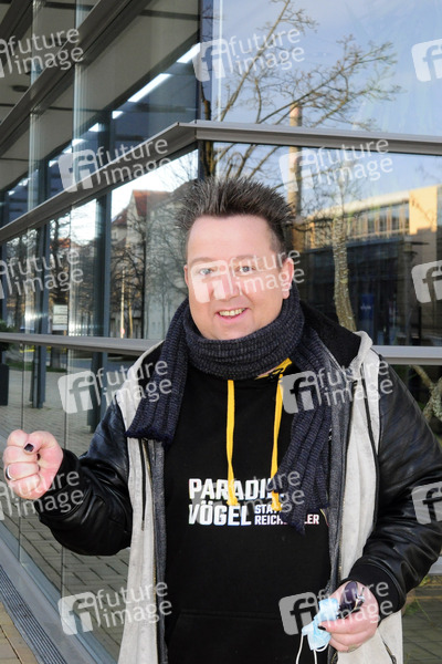 Sebastian Krumbiegel von Die Prinzen bei der Ankunft zur MDR Musikshow 'Ostern bei uns - Live!'. Leipzig, 03.04.2021