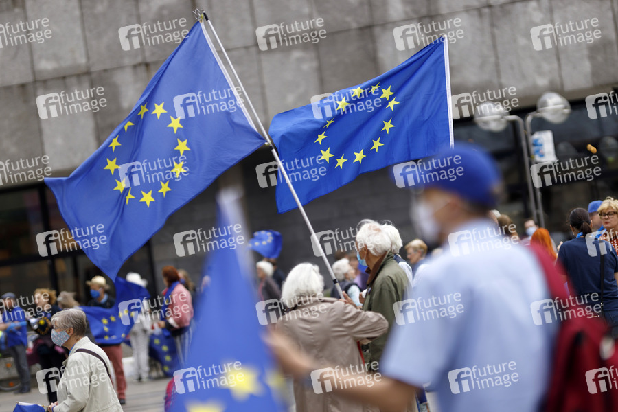 Europa, Europawahl, proeuropäisch, EU-Befürworter, EU-Wahl, EU-Politik, Demo, Demonstration, Kundgebung, Demonstranten, EU, EU-Befürworter, Europa-Flagge, EU-Flagge, gegen Nationalismus, gegen Populismus, Bürgerinitiative, geeintes Europa, pro-Europa-Bewegung, Europäische Union, Europäische Idee, gegen Kleinstaaterei, Meinungsfreiheit, Versammlungsfreiheit, Personenfreizügigkeit, Flüchtlingspolitik, Dienstleistungsfreiheit, freier Warenverkehr, freier Zahlungsverkehr, Binnenmarkt, Europäische Identität, Euro, Wahlkampf, Politik, Europapolitik, Plakate, Kundgebung, Symbolbild, Symbolfoto