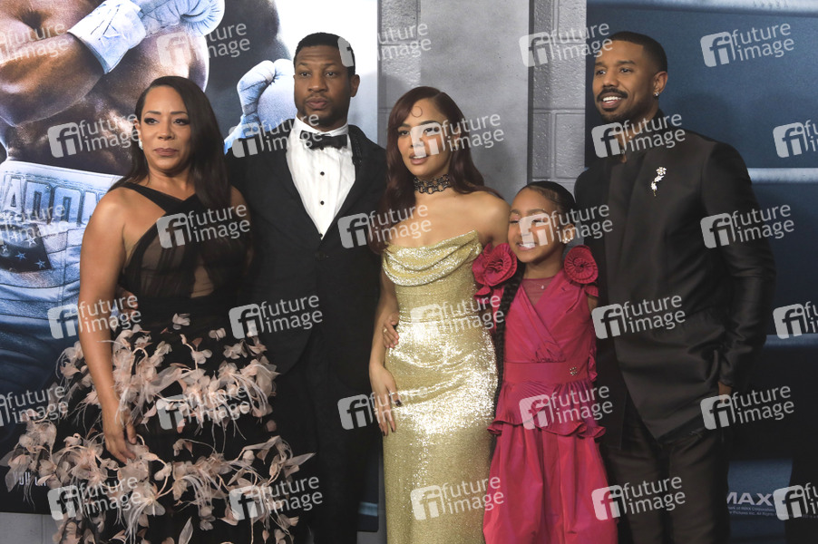 Selenis Leyva, Jonathan Majors, Tessa Thompson, Mila Davis-Kent und Michael B. Jordan bei der Premiere des Kinofilms 'Creed III - Rocky's Legacy' im TCL Chinese Theatre. Los Angeles, 27.02.2023