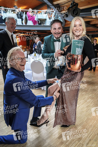 Wolfgang Lippert, Henry Maske, Uwe Herrmann und Gesine Lippert bei der 7. Windflüchter Charity Gala 2024 zu Gunsten der Stiftung 'Betroffen' im Störtebeker Brauquartier. Stralsund, 27.04.2024