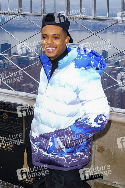 Jabari Banks beim Photocall zur Peacock TV-Serie 'Bel-Air' auf dem Empire State Building. New York, 25.02.2022