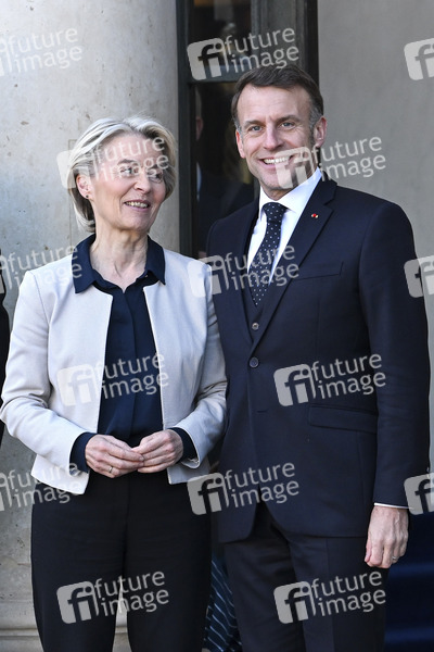 Politiker, Krieg, Ukraine, Russland, Waffenstillstand, Gespräche, Unterstützung, Schutztruppe, Politikerin, Präsidentin der Europäischen Kommission, Politiker, Staatspräsident von Frankreich