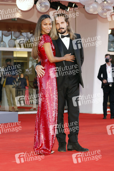 Zoe Saldana mit Ehemann Marco Perego bei der Premiere des Kinofilms 'È stata la mano di Dio / The Hand of God' auf der Biennale di Venezia 2021 / 78. Internationale Filmfestspiele von Venedig im Palazzo del Cinema. Venedig, 02.09.2021