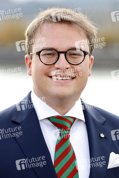 Jungfrau Gerdemie (Björn Braun) vom Kölner Karnevalsverein Traditionskorps Altstädter Köln 1922 e.V. beim Fototermin mit dem Kölner Karneval Dreigestirn der Session 2020/2021 auf den Rheinterrassen. Die neue Session steht unter dem Motto 'Nur zesamme sin mer Fastelovend (Nur zusammen sind wir Karneval)'. Köln, 26.10.2020